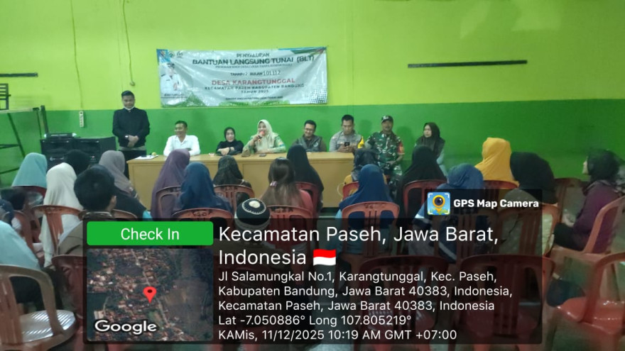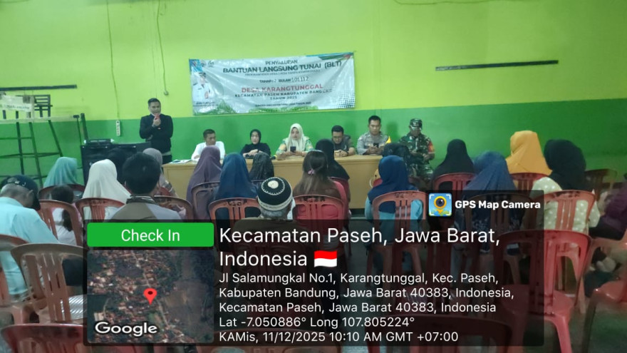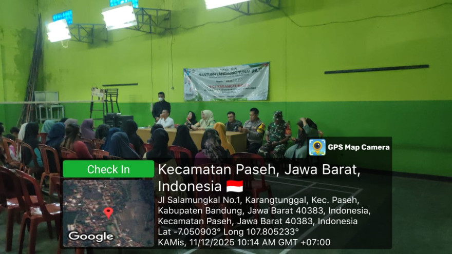 Kamis,11 Desember 2025 - Kegiatan Penyaluran Bantuan Langsung Tunai (BLT) Dari Anggaran Dana Desa Tahap 2 Salur 4 Tahun Anaggaran 2025, Kegiatan Berlangsung di GOR Desa Karangtunggal Kecamatan Paseh Kabupaten bandung, Kepala Desa Karangtunggal di dampingi langsung oleh Ketua BPD Desa Karangtunggal, Tim Pembina Tingkat Kecmatan Paseh, Pendamping Desa, Babinsa, Babinsa dan Seluruh KPM BLT Dana Desa yang Hadir. dan acara berlangsung dengan lancar.